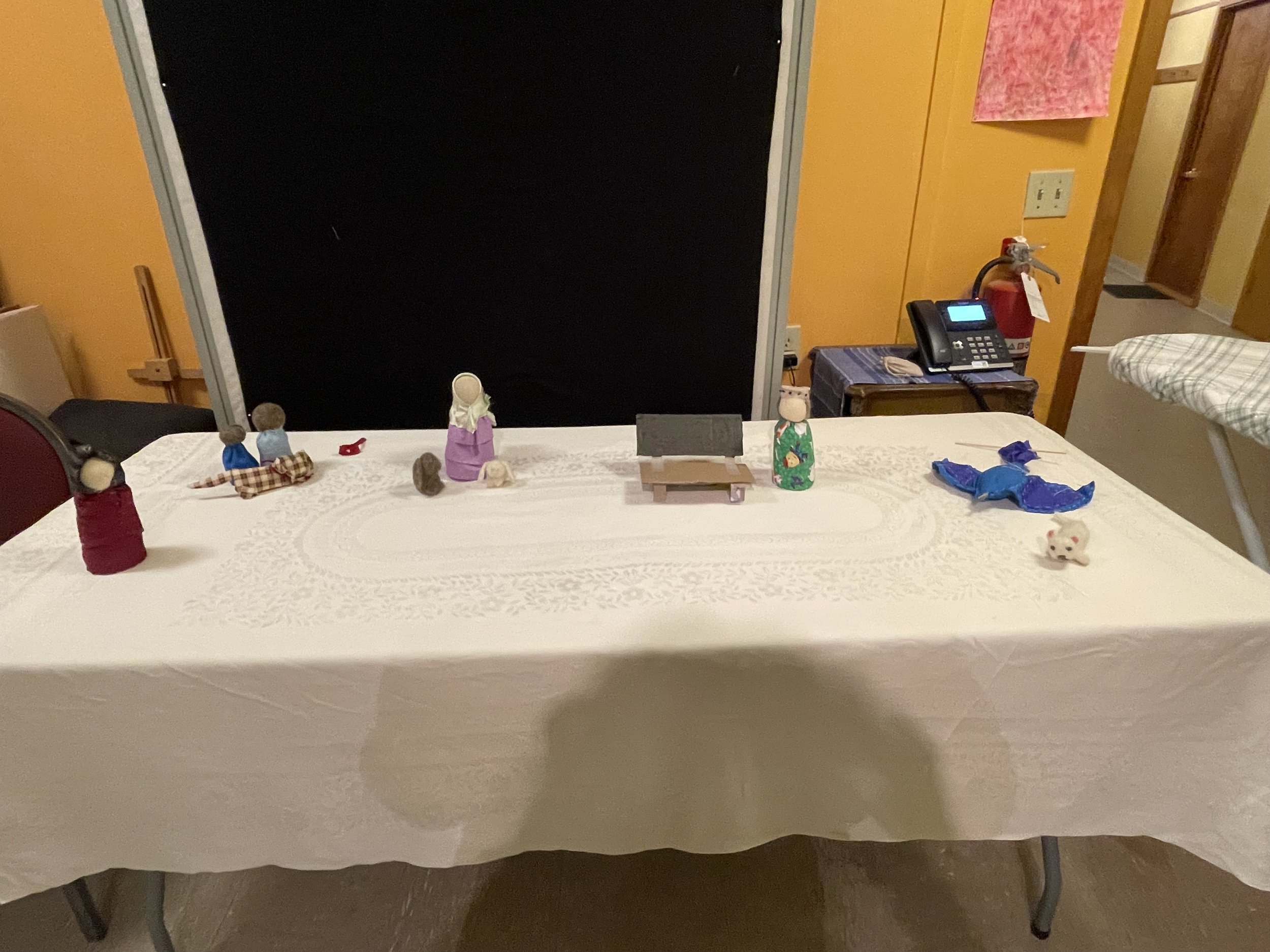 We will practice moving the puppets and make an offering of the show to one or more small groups.